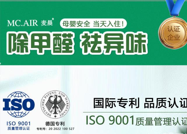 店铺介绍: 麦晨是麦晨环科旗下高端除醛品牌,全国直营。麦晨寓意“麦田之晨”,深耕市场7年!作为国际品牌,麦晨优异除醛产品出口世界多地。 麦晨采用德国专利技术,产品及服务获得ISO9001质量管理体系认证(支持国家认证认可监督管理委员会官方查询)。