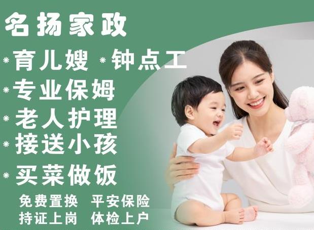 “专注家政 脚踏实地” 专业提供 保姆/月嫂,育婴师,护工,陪护,陪诊/老人护理,产后修复, 钟点工等家政服务,致力于细致周到的服务,受到用户的好评,拥有好口碑和满意度是雇主心目中的好品牌。